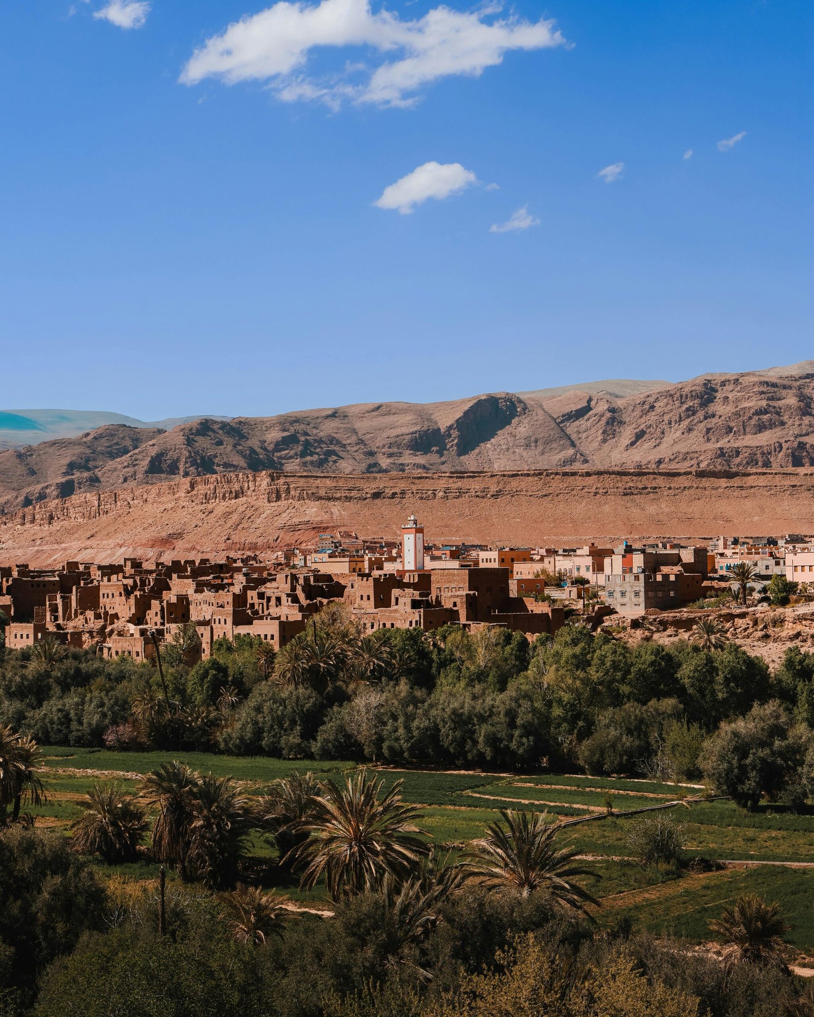 A scenic morning drive along the valley before reaching the towering Todra Gorge, where you can walk between 300m canyon walls. Pass through palm-filled oases, ksour villages, and Tinejdad region until arriving at El Khorbat, a fortified oasis village.